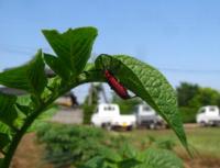 ジャガイモの葉の裏にこのように止まっていました。多分上から見ただけでは気が付かず通り過ぎて行ったことでしょう。