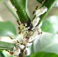 2010年はしばらく剪定していないハナユズにいたイセリアカイガラムシ。