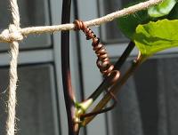 パッションフルーツのつるの巻き付け方。つるはガッチリと巻きついています。