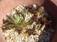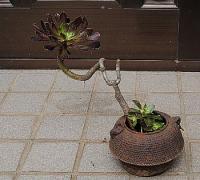 前年にさし芽をしたクロホウシ(黒法師)と元のクロホウシ(黒法師)を一緒に寄せ植えにしました。でもあまりにも不安定です。