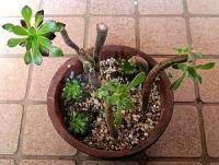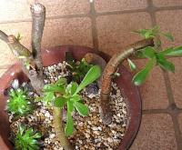 その当時の2008年頃は多肉植物は過湿が苦手とは知らないで、同じ多肉植物のアカプルコゴールドの中に植え込みました。黄色の花が咲いているのがアカプルコゴールドです。