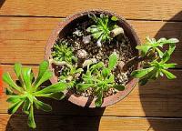家にある適当に用土を混ぜて、そこにクロホウシ(黒法師)やエケベリア、夕映え、カランコエ・ラクシフロラを植えてはみましたが・・・
