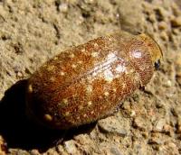 コイチャコガネは芝草やクヌギ、コナラや広葉樹の葉を食べるとのこと。