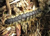モンクロシャチホコは若い時は赤褐色で、船形のポーズをとるのでフナガタムシとも呼ばれている。終齢になると黒色になり黄や白色の長毛が表れ、5cmくらいの体長になります。