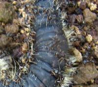殺虫剤を噴霧したらポトリと落ちてきたのですが、暴れています。よく見たらアリが何匹か体に食らいついているようです。地面には大量の糞が落ちています。