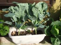 2010-9-20 にプランターにミニ カリフラワーを2本植えました。手前はミニキャベツです。