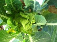 先の葉が巻かれていてどうやらミニ カリフラワーの花蕾(からい)が出来ているようです。