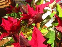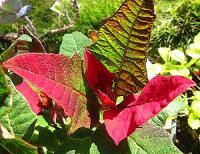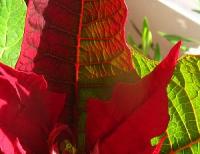 中心部分のポインセチアの葉の様子。緑†赤のグラデーションも面白いです。