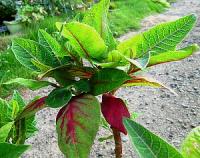 切り戻しをしなかった枝はこの時期になってもまだ赤い葉があります。