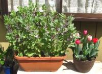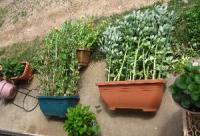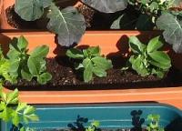 ↓上の葉が見えるのはプランター栽培のブロッコリー。下にチラリと見えるのがスナップエンドウ。