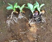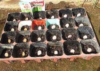↓左の2本は試しにソラマメのタネを横においたもので、右の2本は通常の斜め挿し。