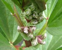 ソラマメは下から上へと花が咲いてきますが、鞘(さや)も一緒にそう育っていきます。