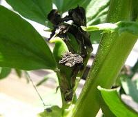 ソラマメを育てていると必ずアブラムシがビッシリと付きます。不思議なことに全く消毒をしていないのにアブラムシがいない・・