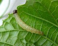 しおれている枝を手でたぐり寄せて切ったりしていましたが、しおれている茎に見慣れたあとを発見しました。茎を裂いてみると、案の定いましたよ。多分メイガの一種(アワノメイガに似ている)かと思います。そばにトウモロコシやソルゴーが植えてあるのが、まずかったかな?