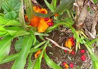 雌花が咲いても、雄花がないときには実をつけることなくオレンジ色になって落ちてしまいます。