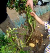 姪の子のYちゃんは赤いジャガイモをサツマイモと勘違いして喜んで集めていました。