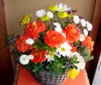我が家のバラ、ガーベラ、小菊、イソギク、頂物のカーネーションなど