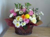 我が家で育てた菊で自己流フラワーアレンジを作りました。