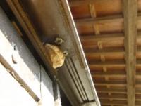 晩秋にワイルドストロベリーがあるサッシ戸の上に卵を産んでいたのです。
