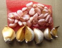 皮をむいだジャンボニンニク。6片あったので6塊になるはずなのに1塊足りません。