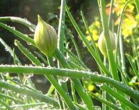 アサツキのつぼみがあります。ネギ類は春になると花が咲きます。