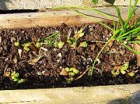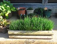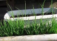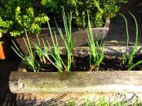 約1ヶ月後のアサツキの様子です。手前は大葉シュンギクです。