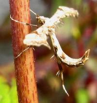 最初この蛾の種類もわからず、画像をそのまま放置しましたが、ネットで偶然それらしき画像を発見しました。特殊な形をしているので、多分トリバガ科の一種でいいかと思います。