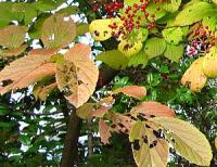 何の虫かわかりませんが、ガマズミにはサンゴジュハムシの食草ということです。