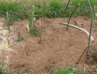 目印をしておかないと、除草のときに掘り起こしてしまうので、ジャンボニンニクの根元近くに少しだけ土を掘り、即植えました。これで芽が出てくれればいいのですが・・・