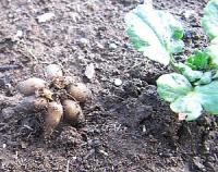 でもニンニクを収穫するときに、ラナンキュラスの球根が1個だけ見つかりました。