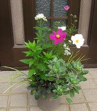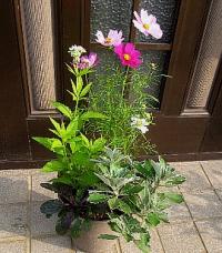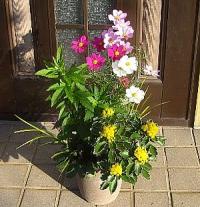 秋の寄せ植えといったら、まずはコスモス。でもコスモスの寄せ植えをするのは初めてです。