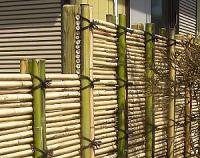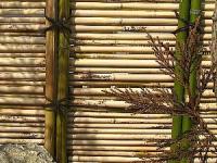 細い丸竹を横に使った垣根で、簾(すだれ)が垂れたように仕上がります。