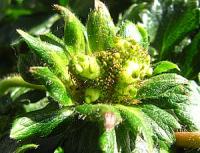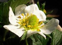 筆などで受粉を助けると形が良いイチゴができます。