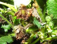 廊下の暖かいところにおいたためか育ちが良すぎてわさわさ混雑してしまい、「紅茜」と同じように、中心部分が灰色かび病になってしまいました。