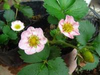株分けしてからの四季成りイチゴ「桃娘」。