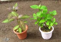 どちらも2012年春に小さな鉢に植え替えました。手入れもしないでおいたのでボサボサになっています。枯れている枝があるので、芽が吹いてから剪定しました。