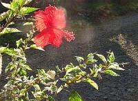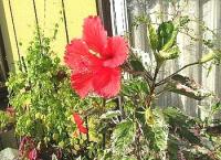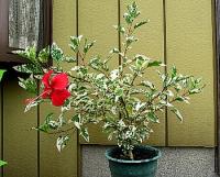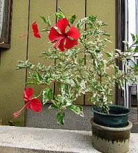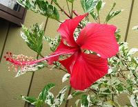 長い蕊(しべ)の花や真っ赤な花色がお気に入りの斑入りハイビスカス 2010-8-9