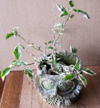 月に2†3度程度の水やりをしていました。ふくろうの鉢カバーは「あほう窯 羽鳥定子」作