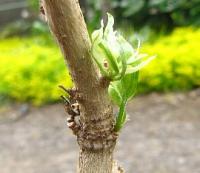 早く大きくなあれと肥料をあげたら、たちまちアブラムシの襲来。今度はオルトランの効力が切れたらしい。