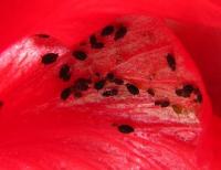よく見たら花の中にアブラムシが・・・チッソ分が多く入っていた肥料を与えたかも? よく覚えていません。