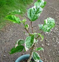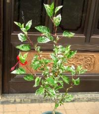 2011年の斑入りハイビスカスの全体はこんな感じで、思い切り短く剪定しました。