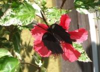 アゲハチョウも吸蜜にきています。真っ黒なので、クロアゲハかな?