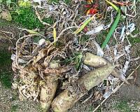 使用済みのプランターの古土、米ヌカ、上記の残りのEM菌、食品のストック点検で古くなった小麦粉、ソバ粉、乾物のワカメなどや発酵食品の納豆やキムチ少々、?(こうじ)一つまみ、使用済みのスダレ、季節の果物の皮(リンゴ、カキ、ミカン、ユズ)