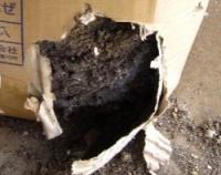 ところがかき混ぜているうちにダンボールに穴が空いてきてしまいました。