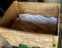 混ぜて上に古シーツやシーツで覆います。最初はこれだけ少ない量ですが、残飯や野菜くずなどを入れたり、米ヌカや使用済み培養土を足したりすると1箱では足りなくなってしまい、もう1個増やしました。