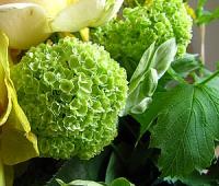 最初はビバーナム・スノーボールの花はグリーンです。