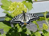 ビバーナム・スノーボールの花にアゲハチョウが・・・