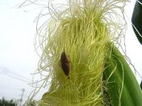 トウモロコシの雌花にも止まっていました。遊んでいたのかな?