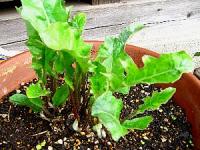 芽が出るとガーベラの生長は早いです。手前に小さなつぼみがもう見えています。