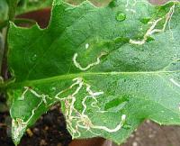エカキムシはプランターの1年生植物全般に付きます。一度、気がついたときにつぶすと我が家ではもう目立った被害がありません。天敵がいるのかしら?